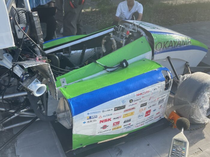 サイドポーンツーンにスポンサーロゴを貼ってもらていました。学生自身が手作りで作るフォーミュラーカー。今年は完走目指して頑張ってください。You tubeで走行を観れるのを楽しみにしております。