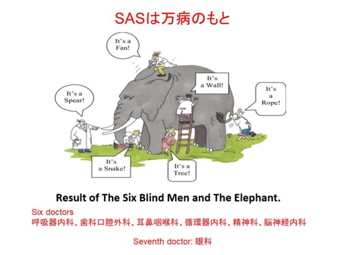 最後はインドの逸話で群盲像を評すに習って、SASの診療を提示しました。