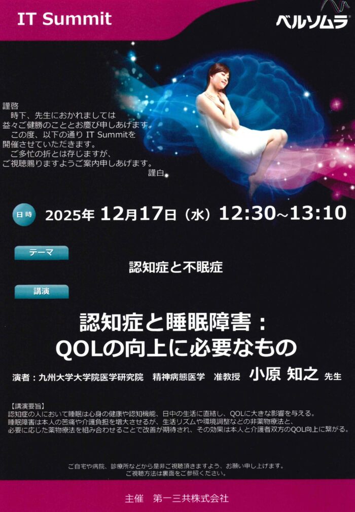 認知症と睡眠障害は密接に関連しています。対応を含めて話をいただきました。音楽の話しは皆興味津々でした。SHIPSのお弁当。
