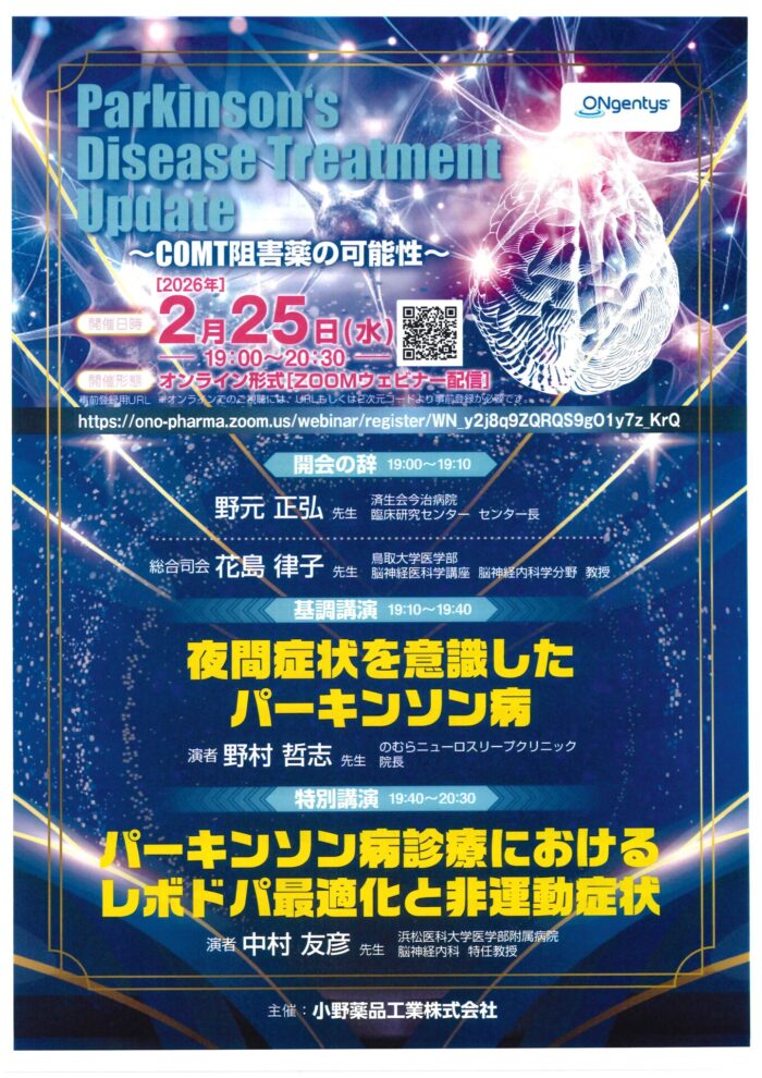 Web講演会で『夜間症状を意識したパーキンソン病』の講演をしました。